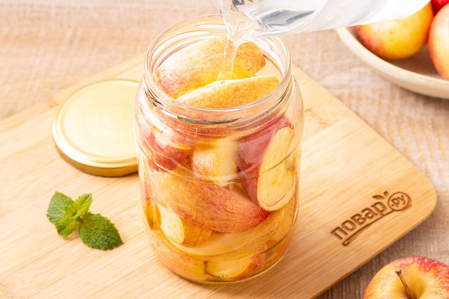 Рецепт консервированных яблочных долек в сладком сахарном сиропе. Это один из самых простых способов заготовки яблок, они хорошо хранятся в холоде и сохраняются все вкусовые качества.