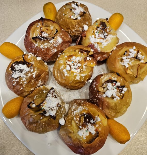 5. Готовым яблокам даем немножко остыть, посыпаем корицей и подаем!