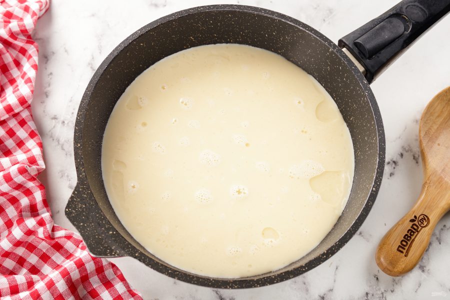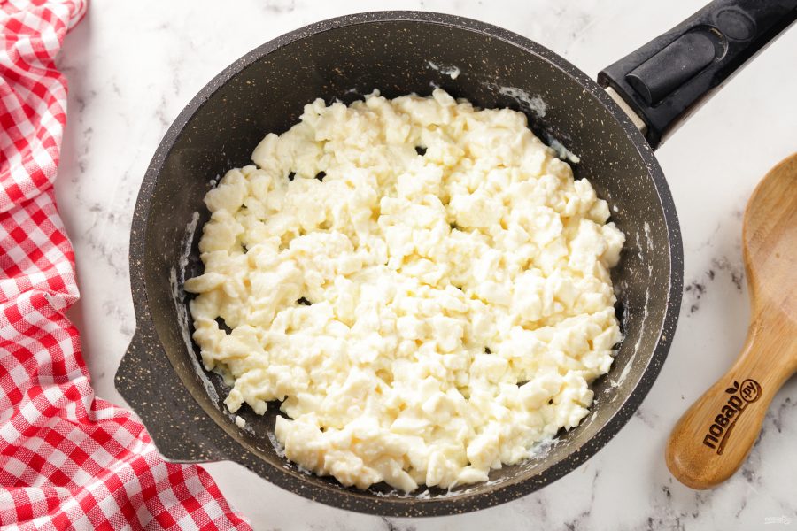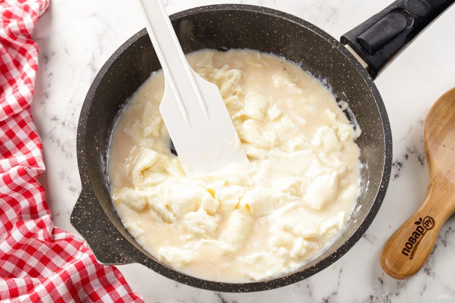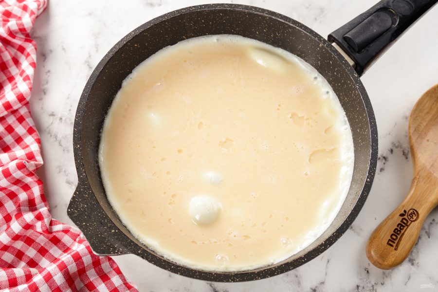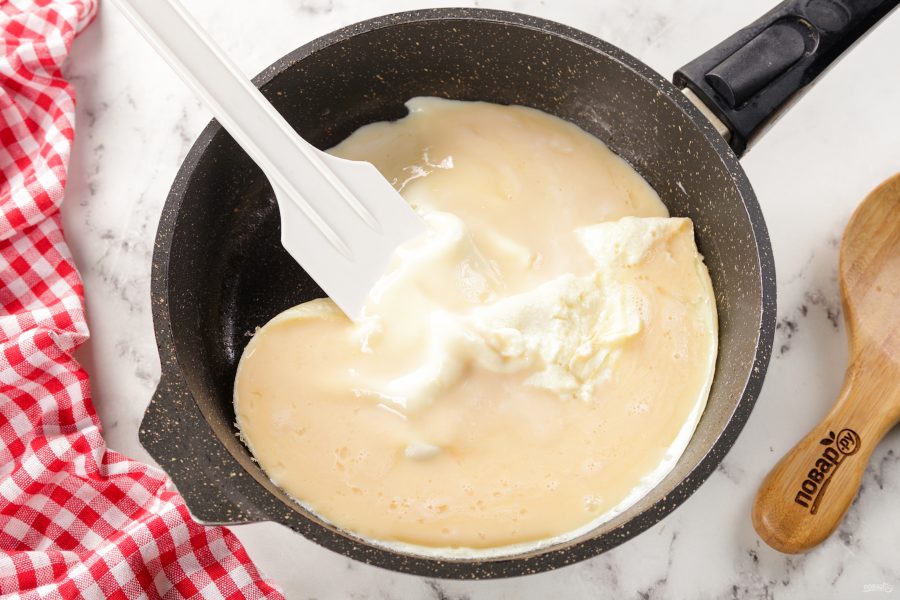Дайте яичной массе немного схватиться.