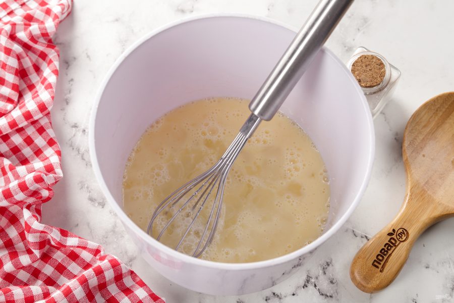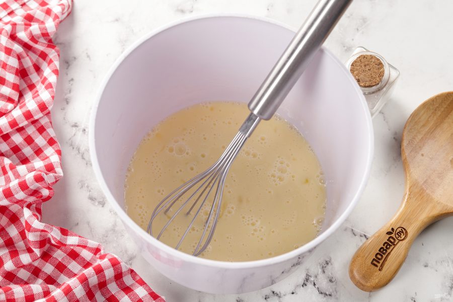 Взбейте яйца венчиком до однородной консистенции.
