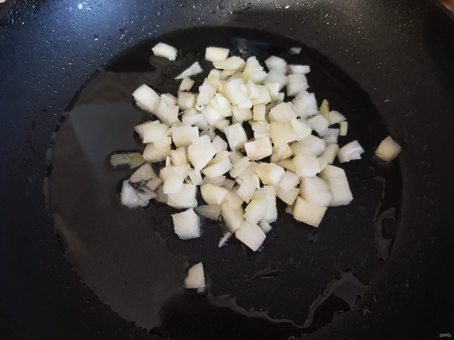 Обжарьте лук в небольшом количестве растительного масла в течение 5 минут.