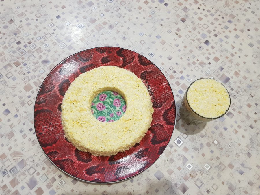 В остывшей поленте стаканом сделайте выемку в середине круга.