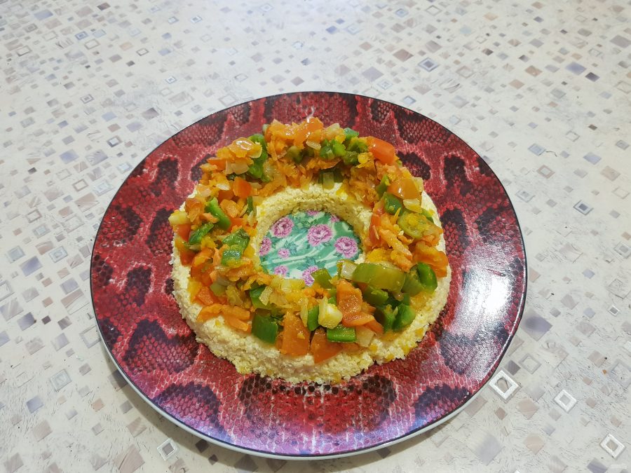 На поленту выкладывайте овощную смесь ровным слоем и зовите близких на дегустацию!