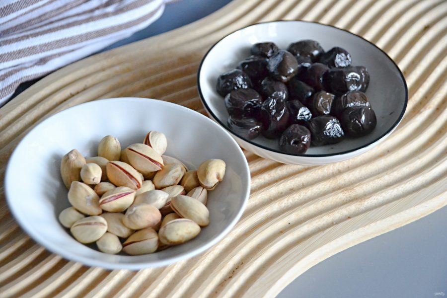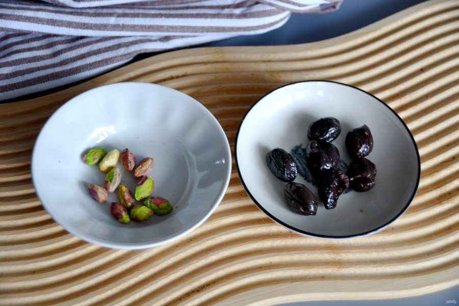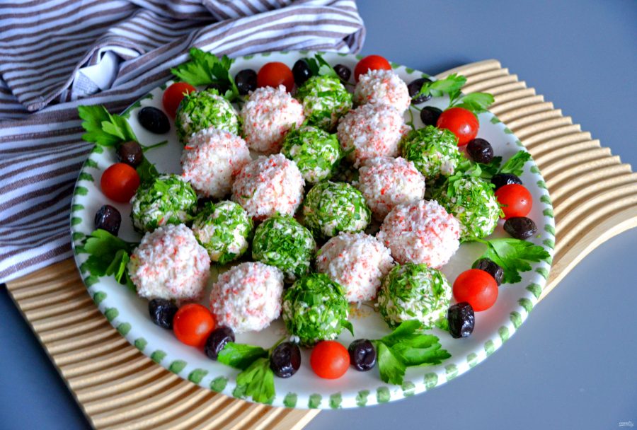 Мы же знаем, что внутри знаменитых конфет «Рафаэлло» находится «изюминка», вкусный миндальный орешек, поэтому можно добавить такую «изюминку» и в закусочные «рафаэлки», пусть это будут фисташки и маслины (или оливки).