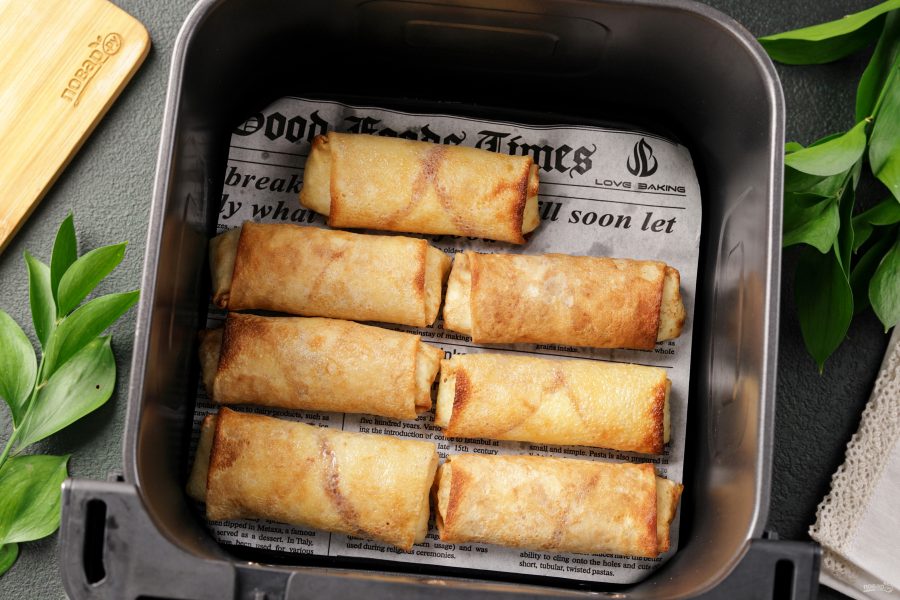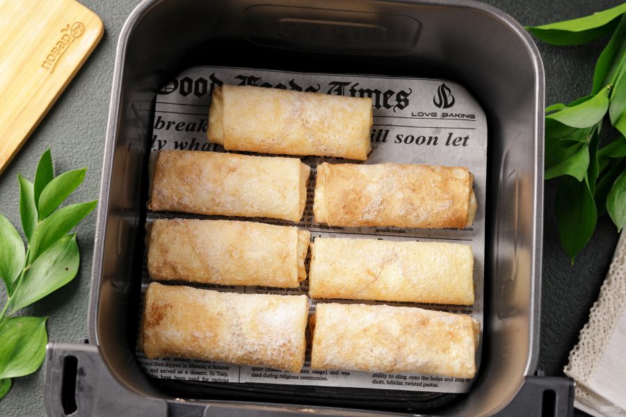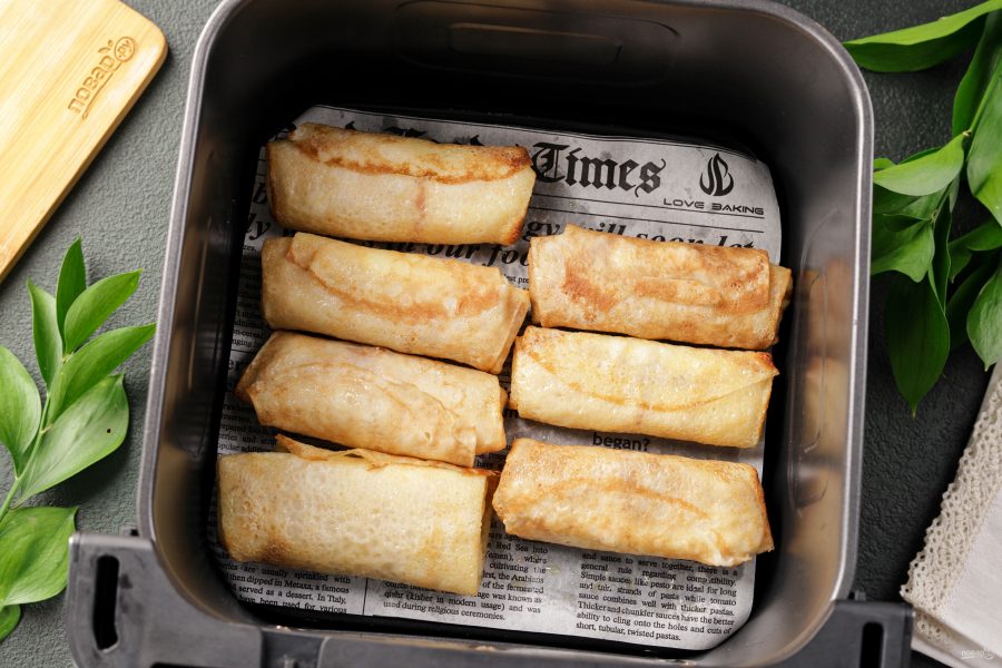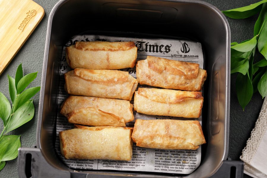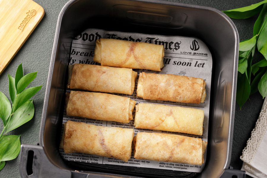 Приготовить замороженные блины в аэрогриле можно с любой начинкой. Блинчики получаются нежные, румяные, с аппетитными хрустящими краями — ну очень вкусно, а времени уйдёт не более 15 минут.
