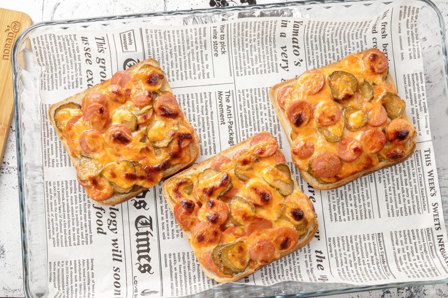 Запечённые бутерброды готовы. Подавайте горячими сразу к столу. Приятного аппетита!