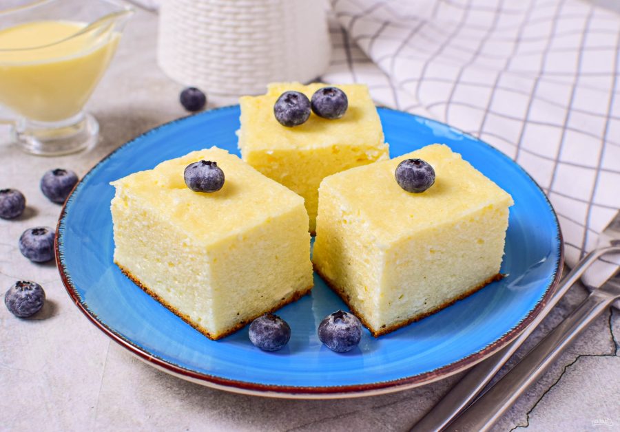 Готовая запеканка в центре перестала быть жидкой, а по бокам стала подрумяниваться. Можно дать ей немного постоять в выключенной мультиварке.