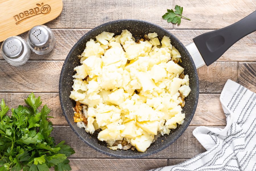 Репчатый лук обжарьте в сковороде на среднем огне с растительным и сливочным маслом до мягкости и прозрачности.